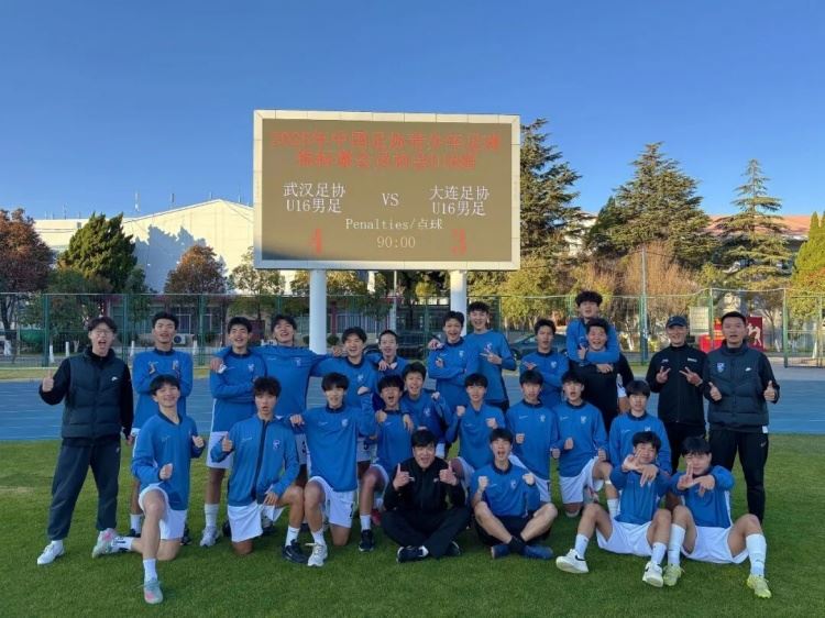 12月16日, 2025年中国足协青少年足球锦标赛会员协会男子U16组排位赛第三轮落下帷幕。在昆明赛区举行的决赛中,武汉足协U16队与大连足协U16队在常规时间内战成1-1平,最终通过点球大战以4-3胜出,夺得冠军!